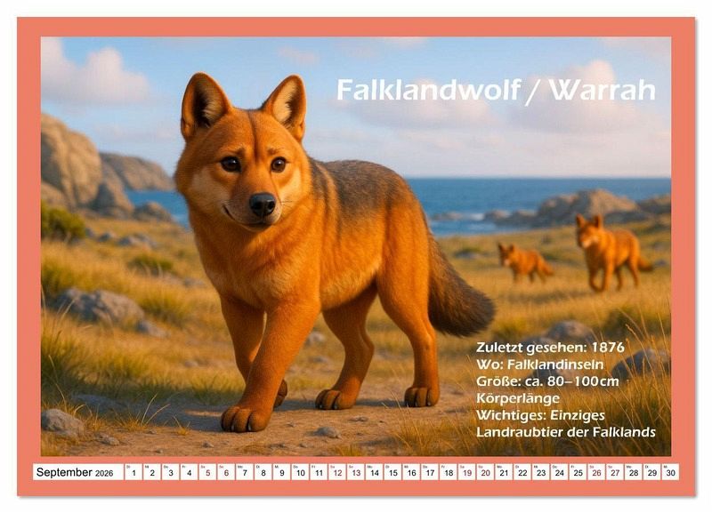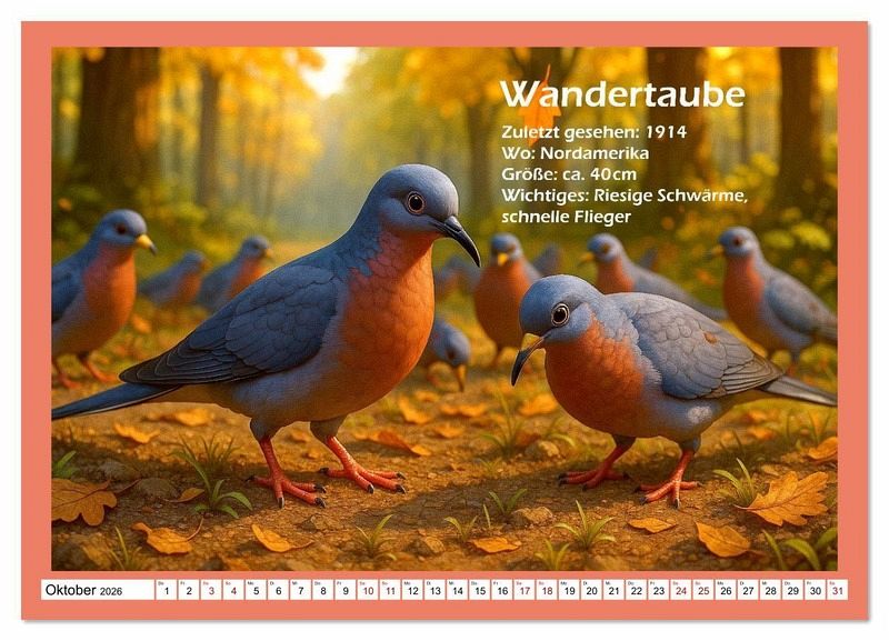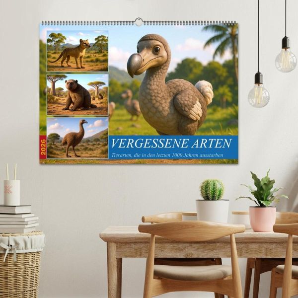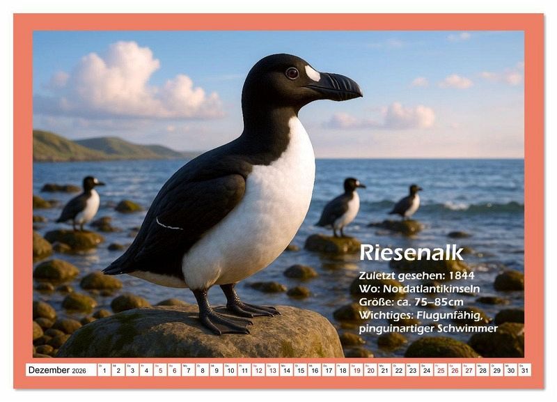 Tauche ein in eine faszinierende Bilderwelt ausgestorbener Tiere - von der KI erschaffen, um sie wieder vor Augen zu führen. Jeder Kalender zeigt Szenen, wie sie einst gewesen sein könnten - realistisch inspiriert, aber nicht bis ins letzte Detail historisch garantiert. Entdecke mit uns Tiere, die verschwunden sind, aber noch immer beeindrucken. Ein Kalender für Neugierige, Naturliebhaber und alle, die Geschichte lebendig sehen wollen.