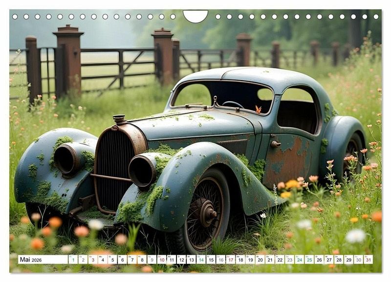 Entdecken Sie mit "Vergessene Legenden" eine faszinierende Bilderreise durch die stille Welt verlassener Oldtimer. Jede Aufnahme zeigt einen einzigartigen Klassiker, gezeichnet von Zeit, Natur und Wetter, und erzählt von einstigem Glanz, Abenteuern und Sehnsucht. Diese KI-generierten Motive verbinden kunstvollen Verfall mit nostalgischer Automobileleganz. Für jeden Liebhaber alter Fahrzeuge und authentischer Bildästhetik ist dieses Werk eine inspirierende Hommage an das, was überdauert. Lassen Sie sich Monat für Monat von neuem überraschen und träumen Sie sich in vergangene Zeiten…mehr