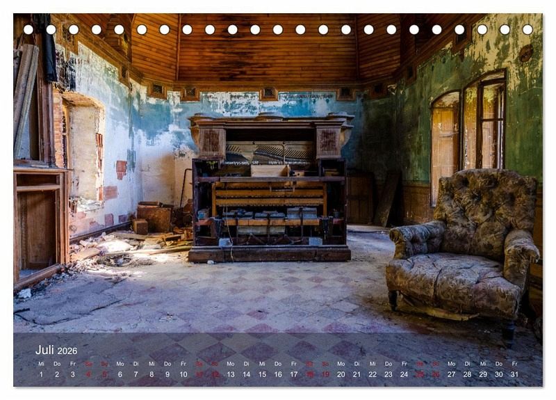 Ein fotografischer Querschnitt durch verlassene Orte in Europa. Mit der für den Fotografen typischen Mischung aus Ruhe, Spannung und Realitätsnähe haben Sie jeden Monat ein neues Bild, auf das Sie sich freuen können.