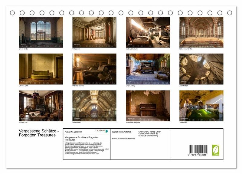 QUALITÄT - Hochwertiger Fotokalender mit 12 wunderschönen Motiven auf lichtbeständigem Bilderdruckpapier, robuste Spiralbindung.NACHHALTIG - deutliche Abfallreduzierung durch bedarfsgerechte Einzelstückfertigung, umweltfreundliches FSC-zertifiziertes Papier, Produktion in Deutschland, klimabewusste Logistik.PERFEKTES GESCHENK - Kalender für Freunde und Familie, für Kinder und Erwachsene, jung und alt, zu Weihnachten, Geburtstag oder zwischendurch.VIELFALT - Bildkalender in verschiedenen Formaten, z.B. DIN A5, DIN A4, DIN A3 sowie DIN A2. Ob Naturmotiv, Gemälde oder Fotos, ideal für ein persönliches Wohlfühlambiente.Verlassene Orte von ihrer schönsten Seite von Autor(in): Carismarkus