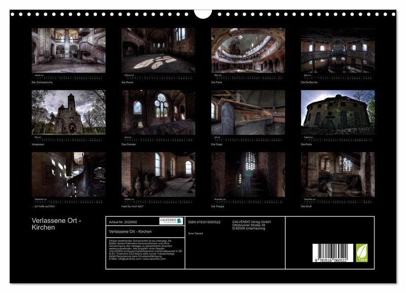 QUALITÄT - Hochwertiger Fotokalender mit 12 wunderschönen Motiven auf lichtbeständigem Bilderdruckpapier, robuste Spiralbindung mit Aufhängebügel.NACHHALTIG - deutliche Abfallreduzierung durch bedarfsgerechte Einzelstückfertigung, umweltfreundliches FSC-zertifiziertes Papier, Produktion in Deutschland, klimabewusste Logistik.PERFEKTES GESCHENK - Kalender für Freunde und Familie, für Kinder und Erwachsene, jung und alt, zu Weihnachten, Geburtstag oder zwischendurch.VIELFALT - Bildkalender in verschiedenen Formaten, z.B. DIN A5, DIN A4, DIN A3 sowie DIN A2. Ob Naturmotiv, Gemälde oder Fotos, ideal für ein persönliches Wohlfühlambiente.12 beeindruckende Fotokunstwerke verlassener Kirchen. von Autor(in): Sven Gerard