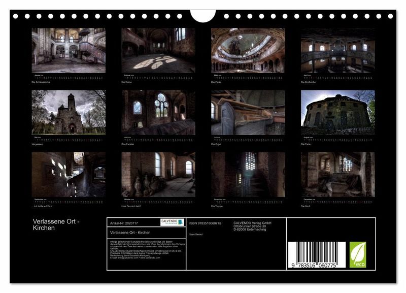 QUALITÄT - Hochwertiger Fotokalender mit 12 wunderschönen Motiven auf lichtbeständigem Bilderdruckpapier, robuste Spiralbindung mit Aufhängebügel.NACHHALTIG - deutliche Abfallreduzierung durch bedarfsgerechte Einzelstückfertigung, umweltfreundliches FSC-zertifiziertes Papier, Produktion in Deutschland, klimabewusste Logistik.PERFEKTES GESCHENK - Kalender für Freunde und Familie, für Kinder und Erwachsene, jung und alt, zu Weihnachten, Geburtstag oder zwischendurch.VIELFALT - Bildkalender in verschiedenen Formaten, z.B. DIN A5, DIN A4, DIN A3 sowie DIN A2. Ob Naturmotiv, Gemälde oder Fotos, ideal für ein persönliches Wohlfühlambiente.12 beeindruckende Fotokunstwerke verlassener Kirchen. von Autor(in): Sven Gerard
