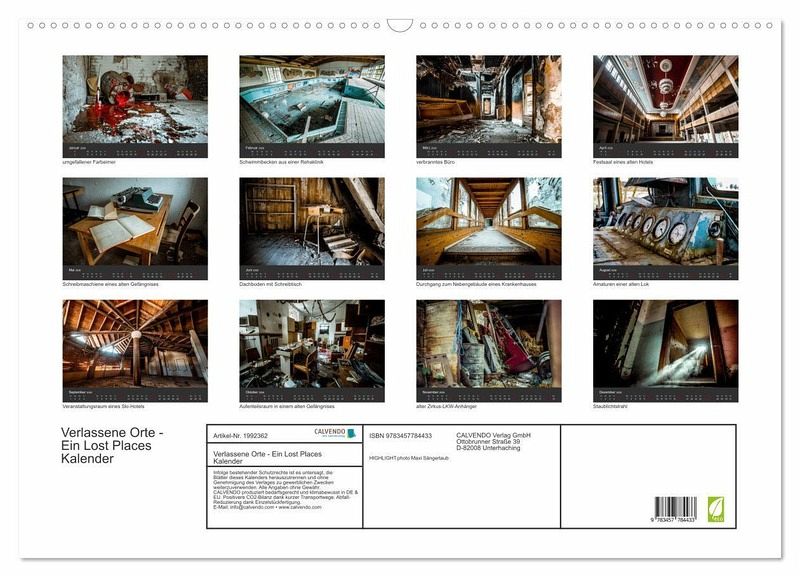 QUALITÄT - Hochwertiger Fotokalender mit 12 wunderschönen Motiven auf lichtbeständigem Bilderdruckpapier, robuste Spiralbindung mit Aufhängebügel.NACHHALTIG - deutliche Abfallreduzierung durch bedarfsgerechte Einzelstückfertigung, umweltfreundliches FSC-zertifiziertes Papier, Produktion in Deutschland, klimabewusste Logistik.PERFEKTES GESCHENK - Kalender für Freunde und Familie, für Kinder und Erwachsene, jung und alt, zu Weihnachten, Geburtstag oder zwischendurch.VIELFALT - Bildkalender in verschiedenen Formaten, z.B. DIN A5, DIN A4, DIN A3 sowie DIN A2. Ob Naturmotiv, Gemälde oder Fotos, ideal für ein persönliches Wohlfühlambiente.Lost Places Fotografien in verschiedenen verlassenen Gebäuden von Autor(in): Maxi Sängerlaub