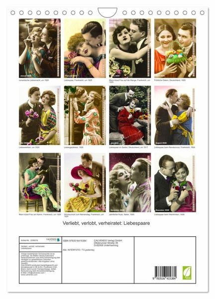 QUALITÄT - Hochwertiger Fotokalender mit 12 wunderschönen Motiven auf lichtbeständigem Bilderdruckpapier, robuste Spiralbindung mit Aufhängebügel.NACHHALTIG - deutliche Abfallreduzierung durch bedarfsgerechte Einzelstückfertigung, umweltfreundliches FSC-zertifiziertes Papier, Produktion in Deutschland, klimabewusste Logistik.PERFEKTES GESCHENK - Kalender für Freunde und Familie, für Kinder und Erwachsene, jung und alt, zu Weihnachten, Geburtstag oder zwischendurch.VIELFALT - Bildkalender in verschiedenen Formaten, z.B. DIN A5, DIN A4, DIN A3 sowie DIN A2. Ob Naturmotiv, Gemälde oder Fotos, ideal für ein persönliches Wohlfühlambiente.Liebespaare in der Zeit der Weimarer Republik von Autor(in): CALVENDO Verlag