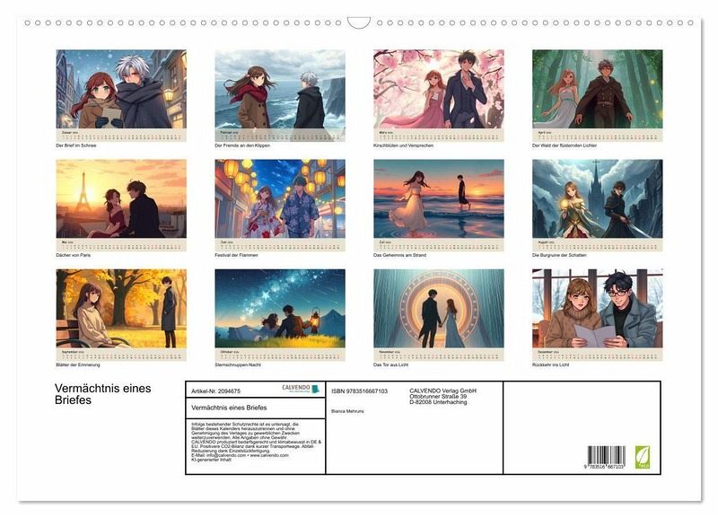 Vermächtnis eines Briefes ist mehr als nur ein Kalender - es ist eine fortlaufende Geschichte in zwölf stimmungsvollen Illustrationen im Manga Stil.