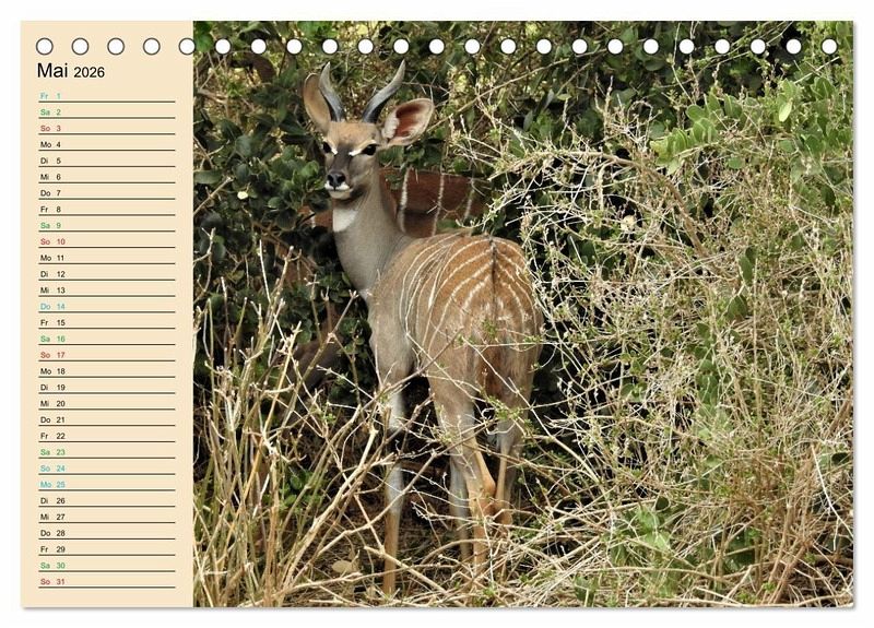 Erlebe Monat für Monat eine Safari: Safari heisst soviel wie Reisen in Swaheli , Kenia, Ostafrika. Geh auf Reisen, erlebe die Wildtiere in der Natur. Nutze diesen Kalender als Planer, für Ereignisse, Geburtstage oder was auch immer. Und, vielleicht planst auch Du deine nächste Safari in Kenia.