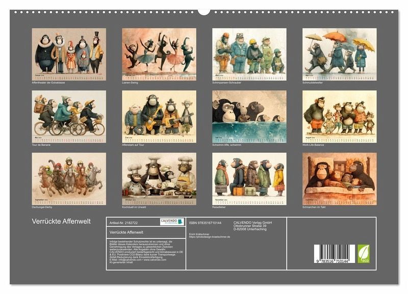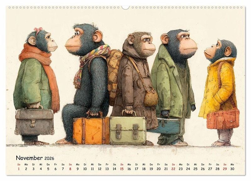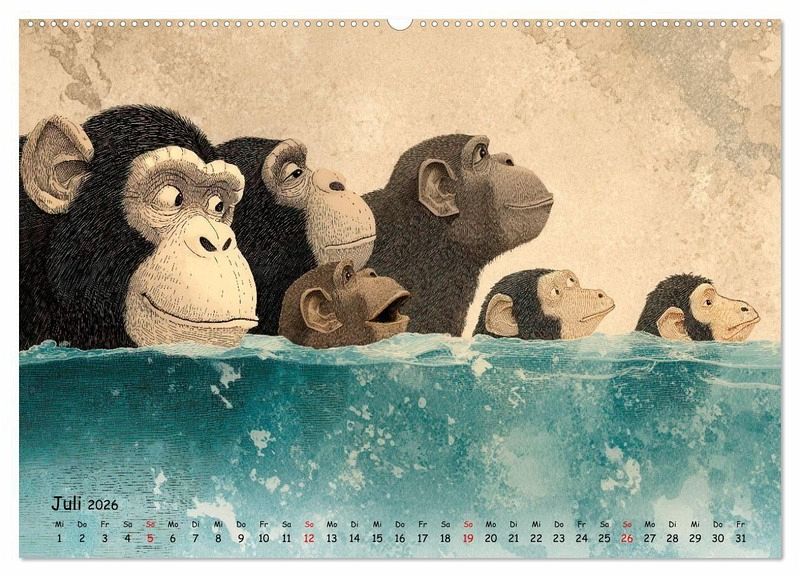 Dann schnapp dir die "Verrückte Affenwelt". Hier gehen die Affen als Rockstars auf Tour oder erfinden das Handwerken neu. Jeder Monat bietet einen tierischen Grund zum Grinsen. Ein Kalender, der garantiert nicht verstaubt. Das perfekte Geschenk für alle, die Humor lieben, Comics feiern und sich jeden Monat ein Stück Urwald-Party an die Wand holen wollen.