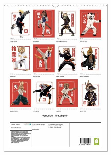 QUALITÄT - Hochwertiger Fotokalender mit 12 wunderschönen Motiven auf lichtbeständigem Bilderdruckpapier, robuste Spiralbindung mit Aufhängebügel.NACHHALTIG - deutliche Abfallreduzierung durch bedarfsgerechte Einzelstückfertigung, umweltfreundliches FSC-zertifiziertes Papier, Produktion in Deutschland, klimabewusste Logistik.PERFEKTES GESCHENK - Kalender für Freunde und Familie, für Kinder und Erwachsene, jung und alt, zu Weihnachten, Geburtstag oder zwischendurch.VIELFALT - Bildkalender in verschiedenen Formaten, z.B. DIN A5, DIN A4, DIN A3 sowie DIN A2. Ob Naturmotiv, Gemälde oder Fotos, ideal für ein persönliches Wohlfühlambiente.12 lustig-, verrückte, tierische Karate und Kung Fu Kämpfer von Autor(in): Luca Schmidt