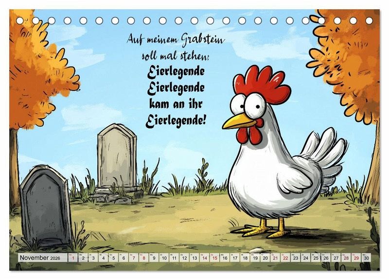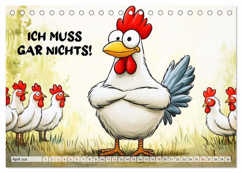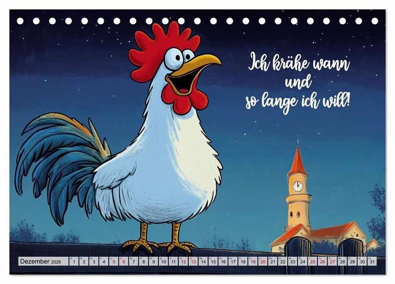 Hier kommt der ultimative Spaß für das ganze Jahr! 12 Monate mit coolen Sprüchen und lustigen KI-Bildern rund um Hühner, Hähne und Eier. Egal, ob du ein Hühner-Fan bist oder einfach nur einen Lacher brauchst, dieser Kalender bringt dich garantiert zum Schmunzeln. Perfekt zum Verschenken oder Selbstbehalten.