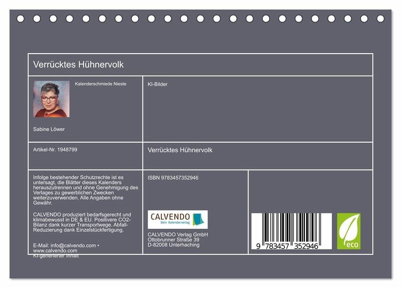 QUALITÄT - Hochwertiger Fotokalender mit 12 wunderschönen Motiven auf lichtbeständigem Bilderdruckpapier, robuste Spiralbindung.NACHHALTIG - deutliche Abfallreduzierung durch bedarfsgerechte Einzelstückfertigung, umweltfreundliches FSC-zertifiziertes Papier, Produktion in Deutschland, klimabewusste Logistik.PERFEKTES GESCHENK - Kalender für Freunde und Familie, für Kinder und Erwachsene, jung und alt, zu Weihnachten, Geburtstag oder zwischendurch.VIELFALT - Bildkalender in verschiedenen Formaten, z.B. DIN A5, DIN A4, DIN A3 sowie DIN A2. Ob Naturmotiv, Gemälde oder Fotos, ideal für ein persönliches Wohlfühlambiente.Witziges rund um Hühner, Hähne und Eier von Autor(in): Sabine Löwer