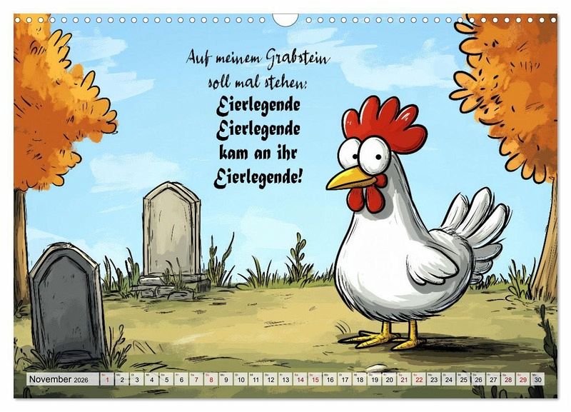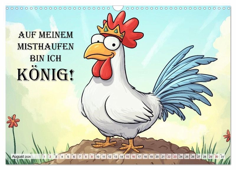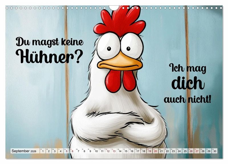 Hier kommt der ultimative Spaß für das ganze Jahr! 12 Monate mit coolen Sprüchen und lustigen KI-Bildern rund um Hühner, Hähne und Eier. Egal, ob du ein Hühner-Fan bist oder einfach nur einen Lacher brauchst, dieser Kalender bringt dich garantiert zum Schmunzeln. Perfekt zum Verschenken oder Selbstbehalten.