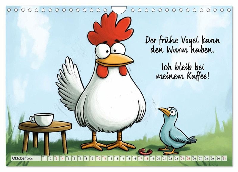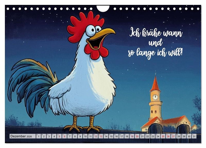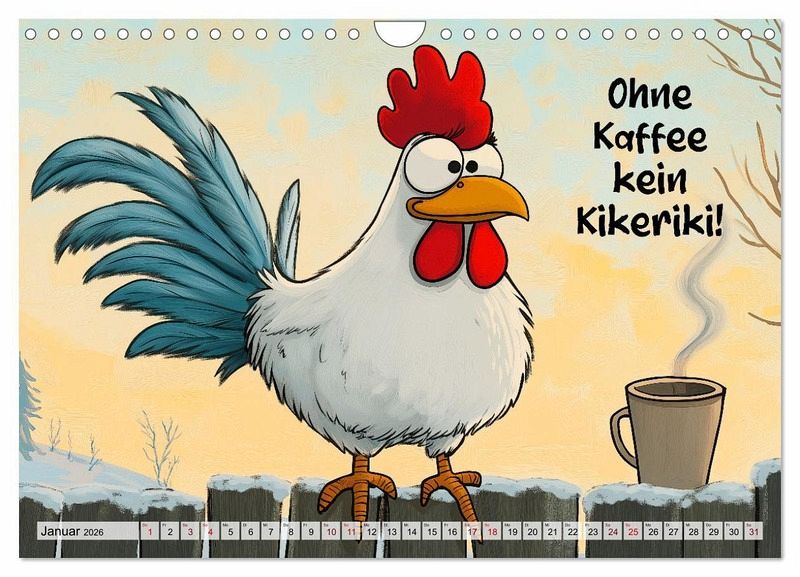 Hier kommt der ultimative Spaß für das ganze Jahr! 12 Monate mit coolen Sprüchen und lustigen KI-Bildern rund um Hühner, Hähne und Eier. Egal, ob du ein Hühner-Fan bist oder einfach nur einen Lacher brauchst, dieser Kalender bringt dich garantiert zum Schmunzeln. Perfekt zum Verschenken oder Selbstbehalten.