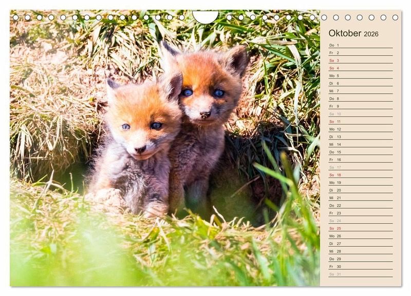 Tauche ein in die bezaubernde Welt der Fuchswelpen! Dieser Kalender zeigt die süßen kleinen Abenteurer, die voller Neugier und Lebensfreude ihre Welt entdecken. Während die erwachsenen Rotfüchse oft scheu und zurückhaltend sind, bringen die verspielten Jungfüchse frischen Wind in dein Zuhause. Lass dich jeden Monat von ihrem charmanten und unwiderstehlichen Wesen verzaubern.