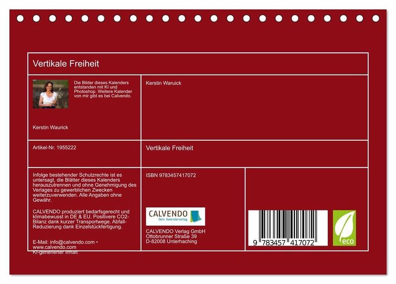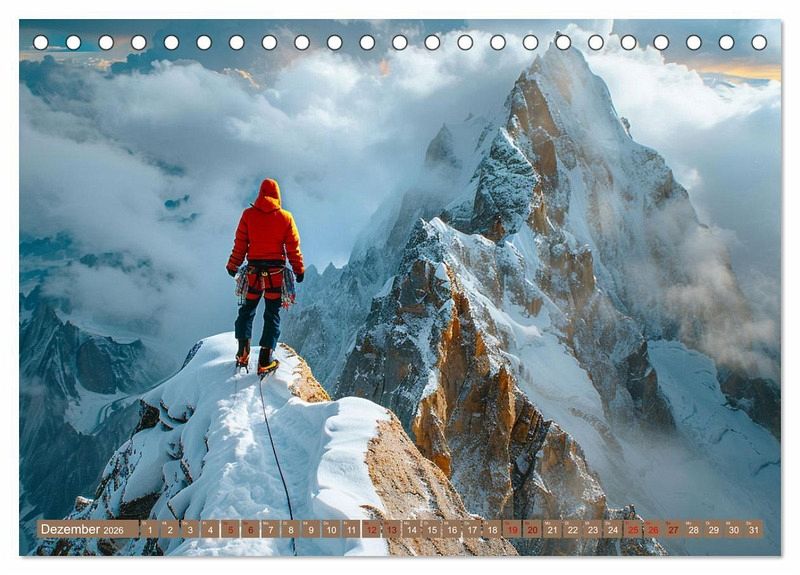 Erleben Sie die Schönheit dieses Sports mit unserem Kalender "Vertikale Freiheit". Tauchen Sie ein in eine Welt grenzenloser Abenteuer und atemberaubender Aussichten, festgehalten durch die KI-generierten Bilder von mutigen Kletterern, die die höchsten Gipfel der majestätischen Gebirge erklimmen. Jeder Monat enthüllt eine neue Szene voller Spannung, Herausforderung und Schönheit, während Sie das Gefühl der Freiheit spüren, das nur das Freiklettern bieten kann. Lassen Sie sich von den kühnen Kletterern und den imposanten Felsformationen inspirieren, während Sie jeden Tag des Jahres das Abenteuer, die Leidenschaft und die Schönheit des Freikletterns genießen. Mit "Vertikale Freiheit" erleben Sie die Welt des Freikletterns, und die Erfüllung des Satzes: Der Weg ist das Ziel.