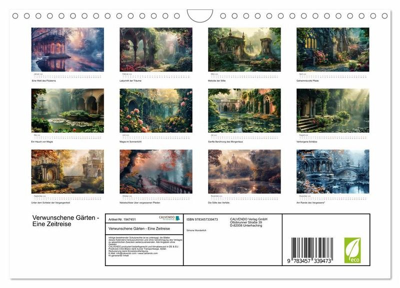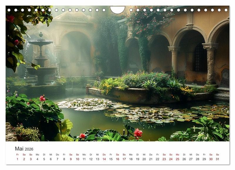 Entdecken Sie die verborgene Schönheit vergangener Epochen mit unserem KI - generierten Kalender "Verwunschene Gärten - Eine Zeitreise". Jeder Monat enthüllt einen neuen zauberhaften Ort, eingefangen in seiner zeitlosen Pracht. Lass dich von den malerischen Bildern und faszinierenden Geschichten historischer Gärten verzaubern. Ein perfektes Geschenk für Naturliebhaber, Geschichtsenthusiasten und alle, die sich nach einem Moment der Ruhe und Inspiration sehnen. Erlebe die Magie vergangener Zeiten in jedem Monat dieses bezaubernden Kalenders.