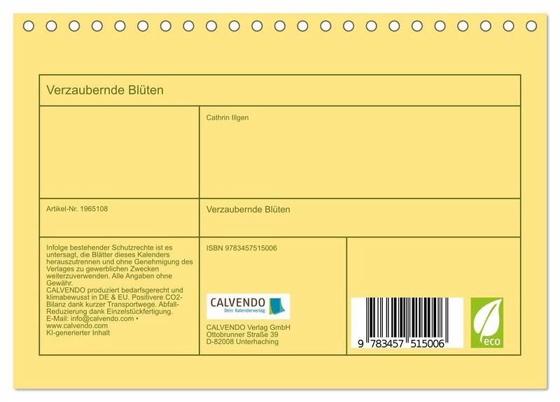 QUALITÄT - Hochwertiger Fotokalender mit 12 wunderschönen Motiven auf lichtbeständigem Bilderdruckpapier, robuste Spiralbindung.NACHHALTIG - deutliche Abfallreduzierung durch bedarfsgerechte Einzelstückfertigung, umweltfreundliches FSC-zertifiziertes Papier, Produktion in Deutschland, klimabewusste Logistik.PERFEKTES GESCHENK - Kalender für Freunde und Familie, für Kinder und Erwachsene, jung und alt, zu Weihnachten, Geburtstag oder zwischendurch.VIELFALT - Bildkalender in verschiedenen Formaten, z.B. DIN A5, DIN A4, DIN A3 sowie DIN A2. Ob Naturmotiv, Gemälde oder Fotos, ideal für ein persönliches Wohlfühlambiente.Fantasievolle malerische Blüten von Autor(in): Catill