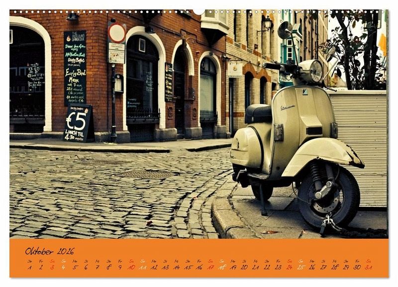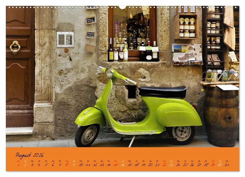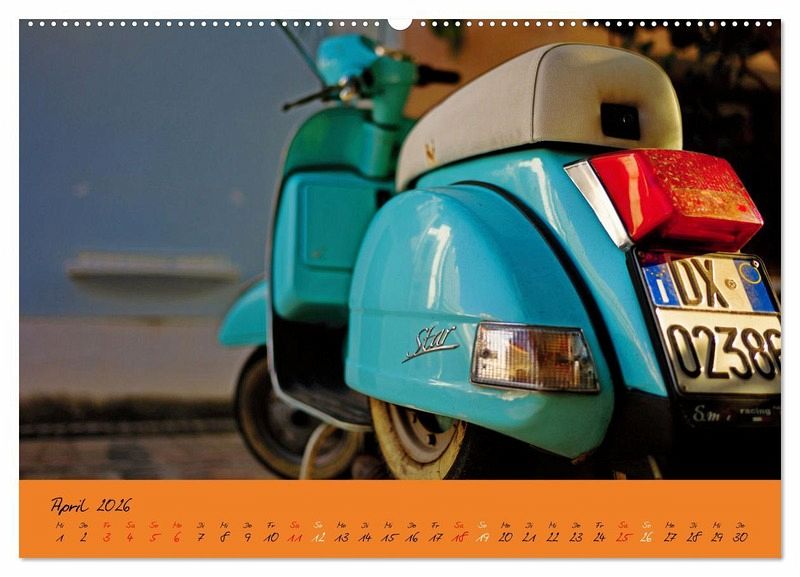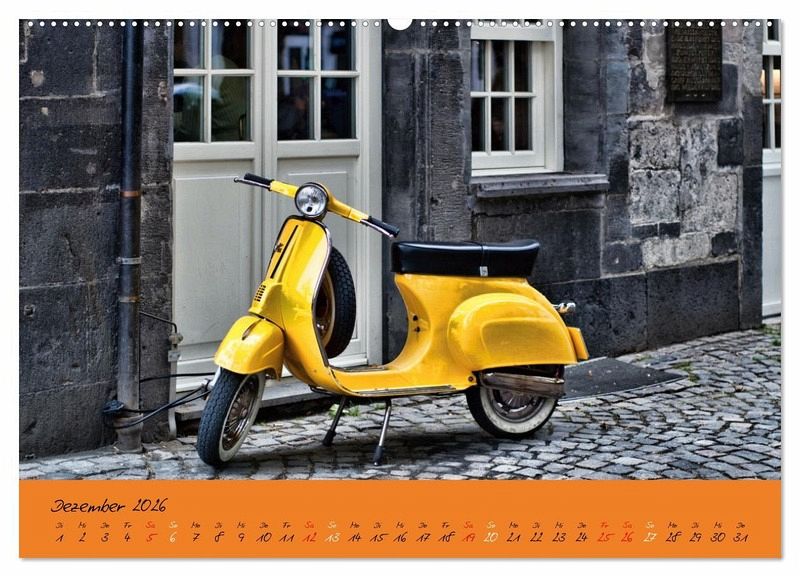 Die Vespa ist seit den 50er Jahren der beliebteste Motorroller. Generationen haben ihn als preiswertes Transportmittel genutzt. Man findet diese Biene in fast allen Städten Europas. Wir haben mit vielen interessanten Fotos diesen Wandkalender kreirt. Eine Hommage an die Vespa für ihre Wand.