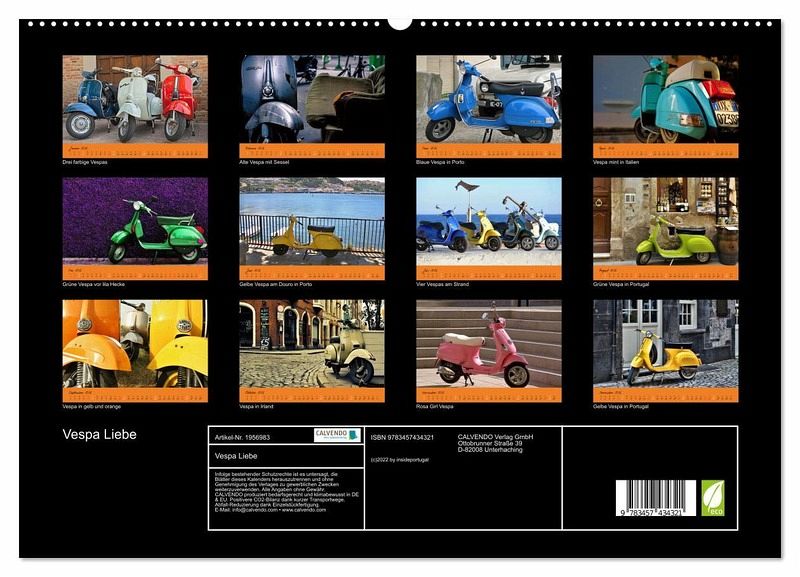PREMIUM-LINIE - Brillanter Fotokalender mit 12 wunderschönen Motiven, Kunstdruck in Hochglanz in Museumsqualität.QUALITÄT - edle Materialien, stabile Rückwand mit 2 innovativen Einstecktaschen für eine optimale Präsentation an der Wand.NACHHALTIG - deutliche Abfallreduzierung durch bedarfsgerechte Einzelstückfertigung, umweltfreundliches FSC-zertifiziertes Papier, Produktion in Deutschland, klimabewusste Logistik.PERFEKTES GESCHENK - Kalender für Freunde und Familie, für Kinder und Erwachsene, jung und alt, zu Weihnachten, Geburtstag oder zwischendurch.Ein Kalender, dem beliebtesten Motorroller gewidmet. Etwas für Kenner von Autor(in): Karin Strunge