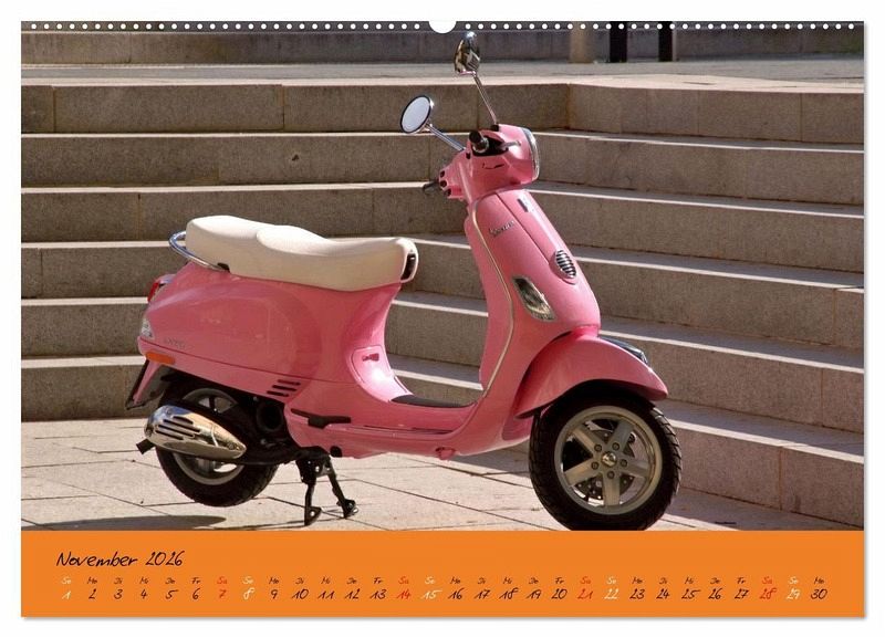 Die Vespa ist seit den 50er Jahren der beliebteste Motorroller. Generationen haben ihn als preiswertes Transportmittel genutzt. Man findet diese Biene in fast allen Städten Europas. Wir haben mit vielen interessanten Fotos diesen Wandkalender kreirt. Eine Hommage an die Vespa für ihre Wand.