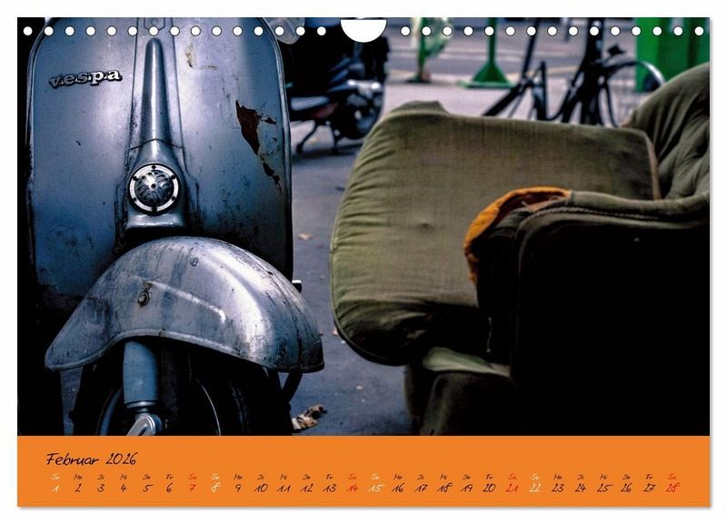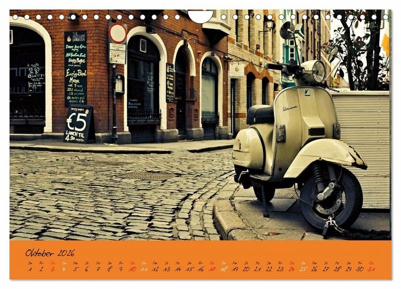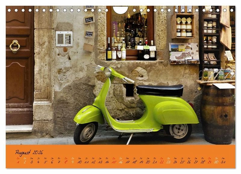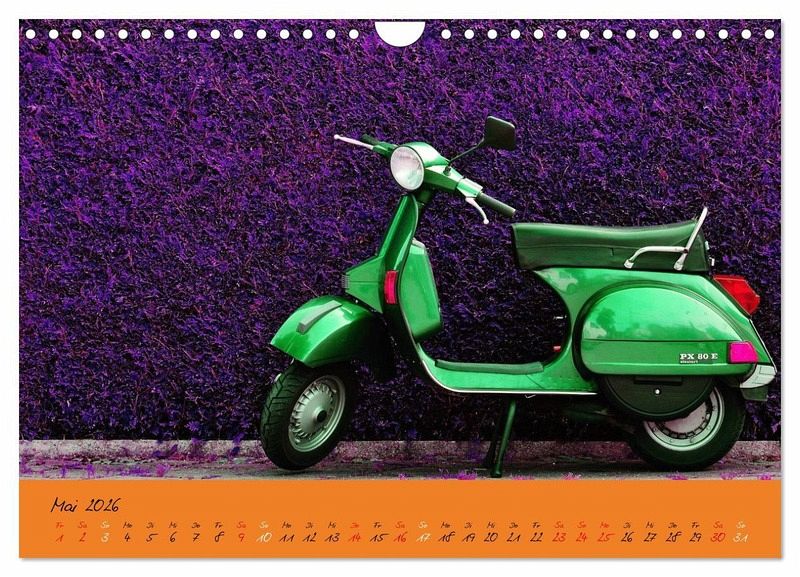 Die Vespa ist seit den 50er Jahren der beliebteste Motorroller. Generationen haben ihn als preiswertes Transportmittel genutzt. Man findet diese Biene in fast allen Städten Europas. Wir haben mit vielen interessanten Fotos diesen Wandkalender kreirt. Eine Hommage an die Vespa für ihre Wand.