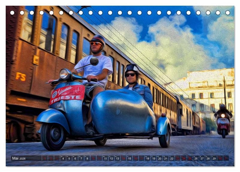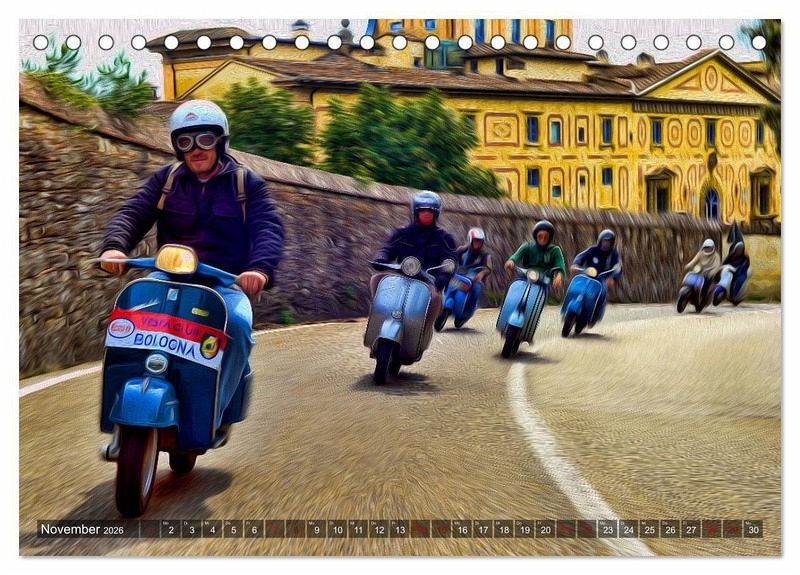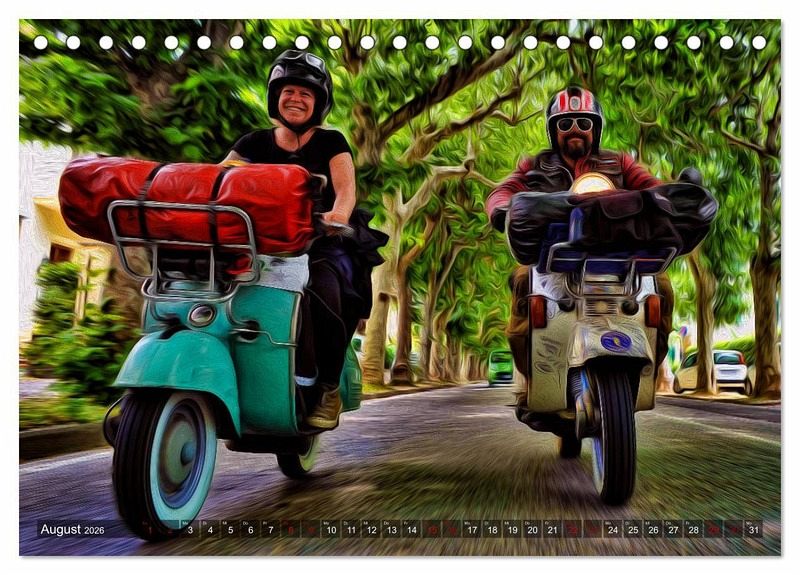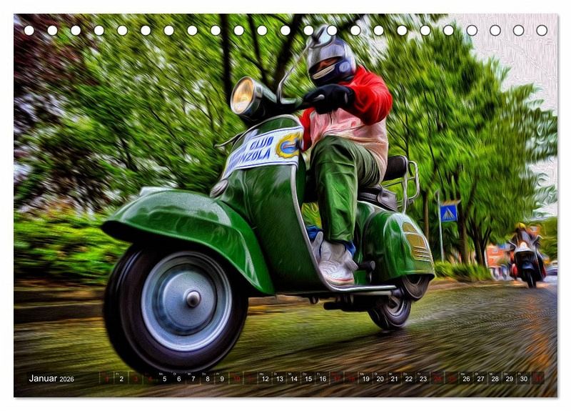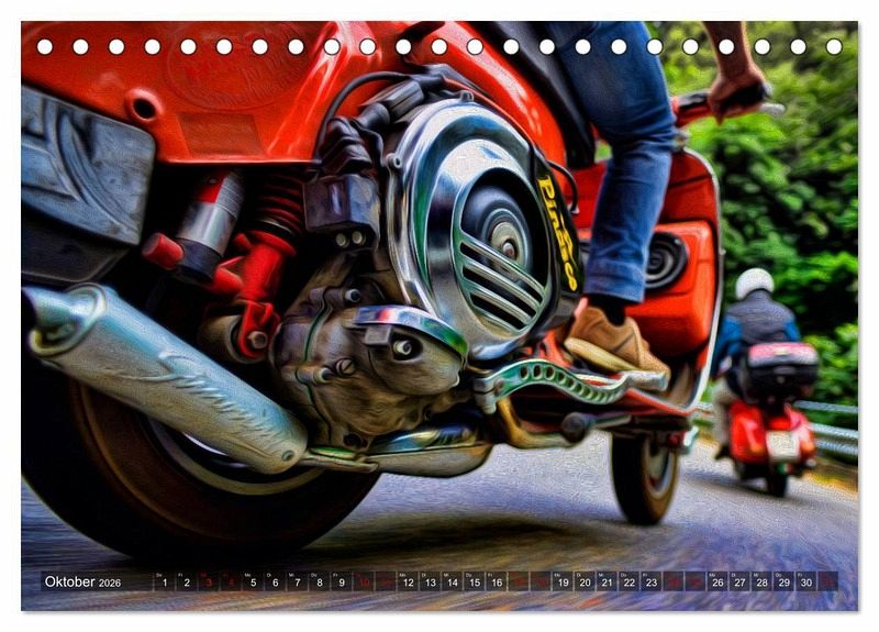 Bewegung, Farben, Kunst, Ölfarbfilter und die Vespa ergeben zusammen einen fantastischen Kalender.