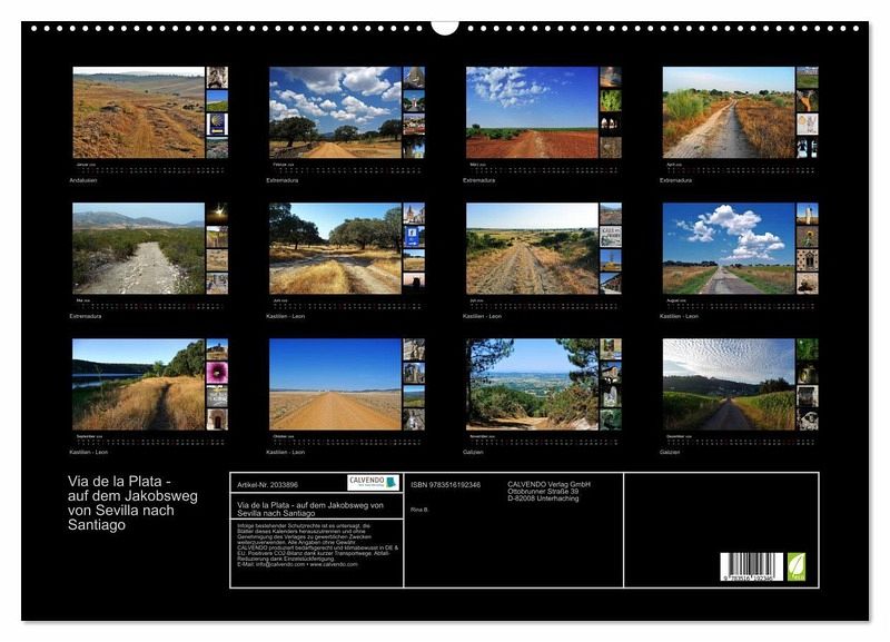 QUALITÄT - Hochwertiger Fotokalender mit 12 wunderschönen Motiven auf lichtbeständigem Bilderdruckpapier, robuste Spiralbindung mit Aufhängebügel.NACHHALTIG - deutliche Abfallreduzierung durch bedarfsgerechte Einzelstückfertigung, umweltfreundliches FSC-zertifiziertes Papier, Produktion in Deutschland, klimabewusste Logistik.PERFEKTES GESCHENK -Kalender für Freunde und Familie, für Kinder und Erwachsene, jung und alt, zu Weihnachten, Geburtstag oder zwischendurch.VIELFALT - Bildkalender in verschiedenen Formaten, z.B. DIN A5, DIN A4, DIN A3 sowie DIN A2. Ob Naturmotiv, Gemälde oder Fotos, ideal für ein persönliches Wohlfühlambiente.Pilgern auf einer alten Römerstraße - 1000 km zu Fuß von Sevilla nach Santiago von Autor(in): Rina B.