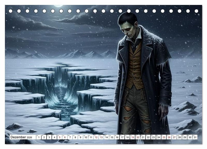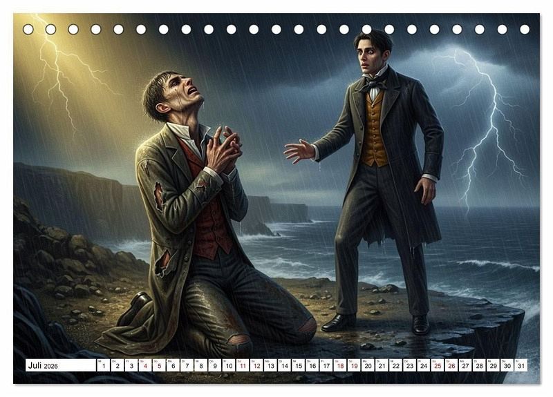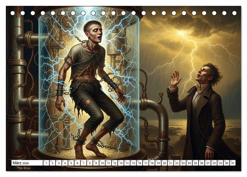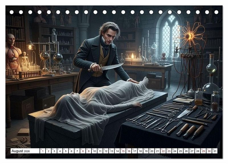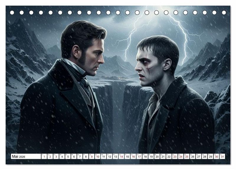 Die Seiten dieses Kalenders bergen mehr als bloße Bilder - sie tragen die Essenz einer Geschichte, die Herz und Geist seit Jahrhunderten in Bann schlägt. Monat für Monat entfalten sich Szenen aus Mary Shelleys Frankenstein: einsame Landschaften, finstere Schatten, und die stille Sehnsucht nach Licht im Angesicht der Finsternis.