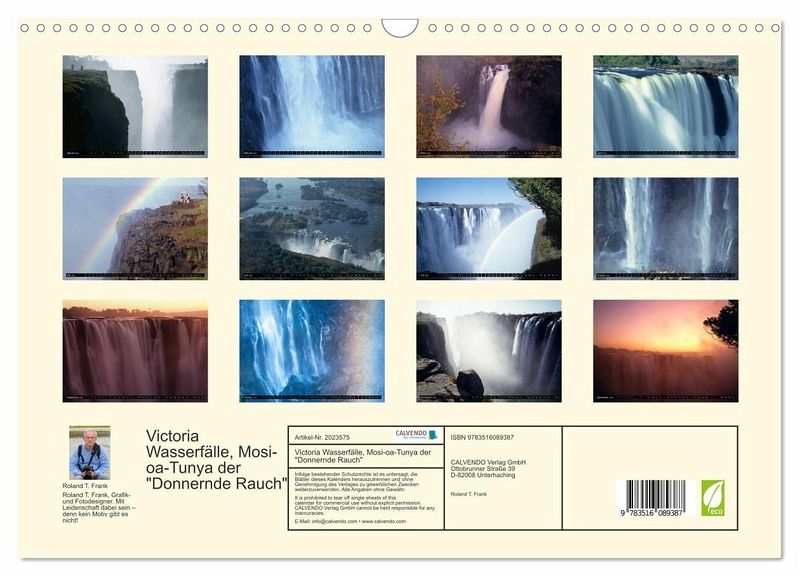 QUALITÄT - Hochwertiger Fotokalender mit 12 wunderschönen Motiven auf lichtbeständigem Bilderdruckpapier, robuste Spiralbindung mit Aufhängebügel.NACHHALTIG - deutliche Abfallreduzierung durch bedarfsgerechte Einzelstückfertigung, umweltfreundliches FSC-zertifiziertes Papier, Produktion in Deutschland, klimabewusste Logistik.PERFEKTES GESCHENK - Kalender für Freunde und Familie, für Kinder und Erwachsene, jung und alt, zu Weihnachten, Geburtstag oder zwischendurch.VIELFALT - Bildkalender in verschiedenen Formaten, z.B. DIN A5, DIN A4, DIN A3 sowie DIN A2. Ob Naturmotiv, Gemälde oder Fotos, ideal für ein persönliches Wohlfühlambiente.Seit 1989 gehören die Victoria Wasserfälle zum Weltnaturerbe der UNESCO. von Autor(in): Roland T. Frank