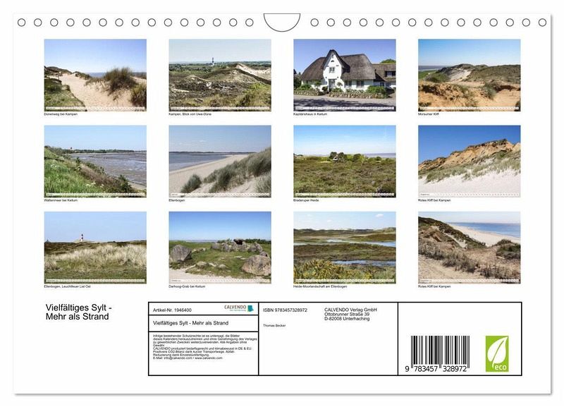 QUALITÄT - Hochwertiger Fotokalender mit 12 wunderschönen Motiven auf lichtbeständigem Bilderdruckpapier, robuste Spiralbindung mit Aufhängebügel.NACHHALTIG - deutliche Abfallreduzierung durch bedarfsgerechte Einzelstückfertigung, umweltfreundliches FSC-zertifiziertes Papier, Produktion in Deutschland, klimabewusste Logistik.PERFEKTES GESCHENK - Kalender für Freunde und Familie, für Kinder und Erwachsene, jung und alt, zu Weihnachten, Geburtstag oder zwischendurch.VIELFALT - Bildkalenderin verschiedenen Formaten, z.B. DIN A5, DIN A4, DIN A3 sowie DIN A2. Ob Naturmotiv, Gemälde oder Fotos, ideal für ein persönliches Wohlfühlambiente.Sylt abseits von Strand und Meer von Autor(in): Thomas Becker