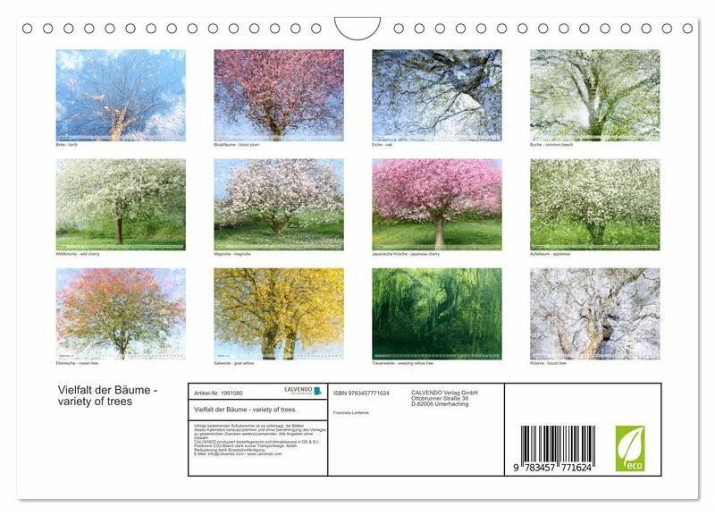 QUALITÄT - Hochwertiger Fotokalender mit 12 wunderschönen Motiven auf lichtbeständigem Bilderdruckpapier, robuste Spiralbindung mit Aufhängebügel.NACHHALTIG - deutliche Abfallreduzierung durch bedarfsgerechte Einzelstückfertigung, umweltfreundliches FSC-zertifiziertes Papier, Produktion in Deutschland, klimabewusste Logistik.PERFEKTES GESCHENK - Kalender für Freunde und Familie, für Kinder und Erwachsene, jung und alt, zu Weihnachten, Geburtstag oder zwischendurch.VIELFALT - Bildkalender in verschiedenenFormaten, z.B. DIN A5, DIN A4, DIN A3 sowie DIN A2. Ob Naturmotiv, Gemälde oder Fotos, ideal für ein persönliches Wohlfühlambiente.Impressionistisch anmutende Fotografien zwölf verschiedener Baumarten. von Autor(in): Franziska Lenferink