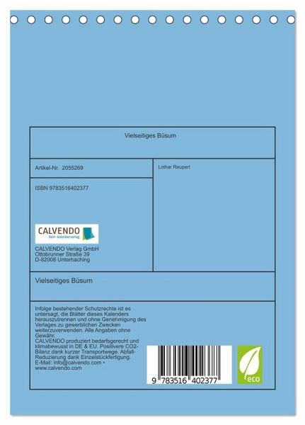 Hochwertiger Tischkalender zum Aufstellen mit 12 wunderschönen Bildern. Unsere Umwelt liegt uns am Herzen. Daher verwenden wir ausschließlich FSC-zertifizierte Papiere aus verantwortungsvoller Waldwirtschaft. Wir vermeiden Überproduktion und somit deutliche Abfallmengen, da wir bedarfsgerecht in Einzelfertigung in Deutschland (Made in Germany) produzieren. Wir halten unsere Transportwege kurz und sorgen für eine klimabewusste Logistik.