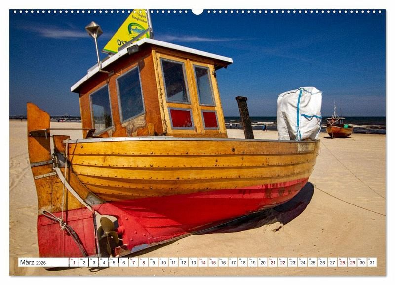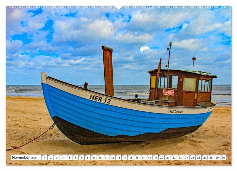 November: Ein Fischkutter am Strand von Heringsdorf - Bansin
