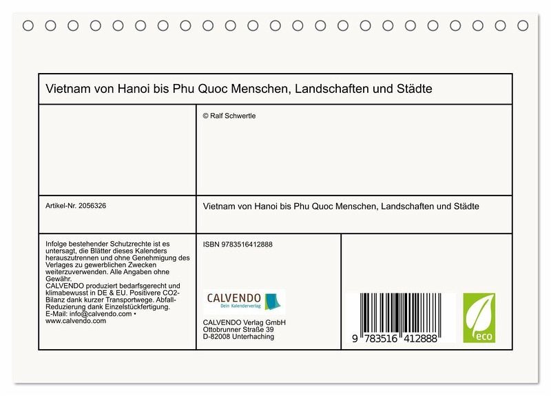 QUALITÄT - Hochwertiger Fotokalender mit 12 wunderschönen Motiven auf lichtbeständigem Bilderdruckpapier, robuste Spiralbindung.NACHHALTIG - deutliche Abfallreduzierung durch bedarfsgerechte Einzelstückfertigung, umweltfreundliches FSC-zertifiziertes Papier, Produktion in Deutschland, klimabewusste Logistik.PERFEKTES GESCHENK - Kalender für Freunde und Familie, für Kinder und Erwachsene, jung und alt, zu Weihnachten, Geburtstag oder zwischendurch.VIELFALT - Bildkalender in verschiedenen Formaten, z.B. DIN A5, DIN A4, DIN A3 sowie DIN A2. Ob Naturmotiv, Gemälde oder Fotos, ideal für ein persönliches Wohlfühlambiente.Das Leben in Vietnam authentisch dokumentiert von Autor(in): Reiselust60+