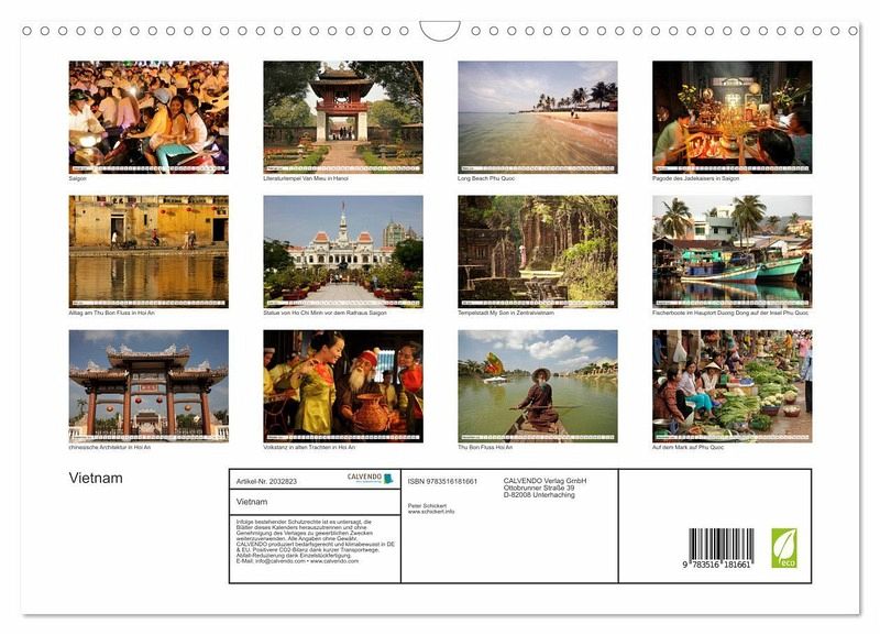 Dieser Kalender des Fotografen Peter Schickert erlaubt Einblicke in den so anderen und fremden Alltag im ehemaligen Indochina. 13 Fotos aus Hanoi, Phu Quoc, Saigon oder Hoi An sorgen für reichlich Fernweh und ein ganzes Jahr voller asiatischer Stimmung.