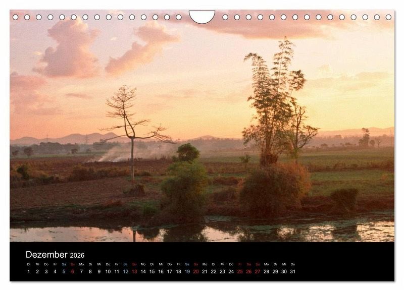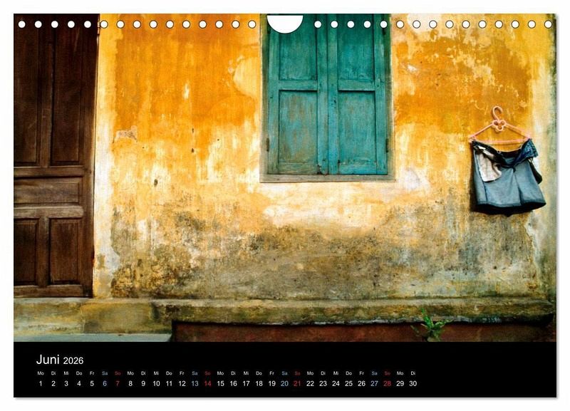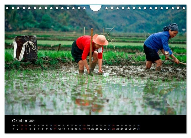 Dieser Kalender ist eine Entdeckungsreise zu Dörfern, Pagoden und bunten Straßenszenen, in denen Frauen mit ihren konischen Strohhüten frische Produkte verkaufen.
