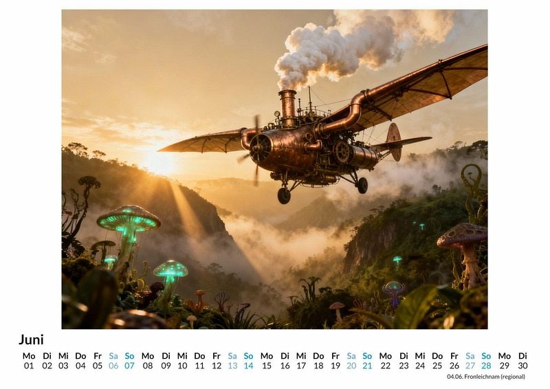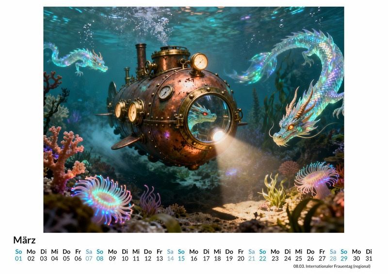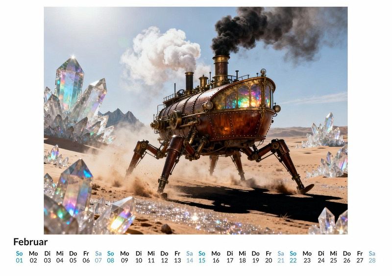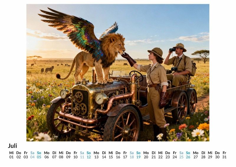 Das Zischen von Dampfmaschinen mischt sich mit den Rufen unbekannter Kreaturen tief im Dschungel. Eine Expedition bricht auf, ausgerüstet mit Messing, Kupfer und dem unerschütterlichen Forschergeist des 19. Jahrhunderts. Der Kalender "Viktorianische Steampunk-Safari" dokumentiert diese Reise in eine Welt, die es nie gab und doch so greifbar scheint. Dieser Kalender ist eine passende Wahl für: * Liebhaber des Steampunk Genres und der viktorianischen Ästhetik. * Freunde von Fabelwesen und fantastischen Welten. * Alle, die Freude an alternativen Geschichtsentwürfen und kreativen Konzepten haben. Monat für Monat entfalten sich Szenen einer kühnen Entdeckungsreise. Forscher in Tropenhelmen beobachten mechanische Giraffen am Wasserloch, während dampfbetriebene Ornithopter über Landschaften kreisen, in denen Greife nisten. Jedes dieser Motive wurde von einer nicht menschlichen Kreativität erdacht und digital zum Leben erweckt, was den Darstellungen eine besondere Note verleiht. Die Bilder sind keine Malereien, sondern detailreiche Kompositionen, die eine alternative Realität zeigen. Was der Kalender bietet: * Zwölf Monatsmotive, die eine durchgehende Geschichte einer Expedition erzählen. * Ein Wandkalender, der als Gesprächsstoff und dekoratives Element dient. * Ein ganzes Jahr voller Inspiration aus einer Welt voller Zahnräder und Fabeltiere. Dieser Kalender ist mehr als nur ein Zeitmesser; er ist ein Fenster in eine fantastische Vergangenheit, die von Dampf und Abenteuerlust angetrieben wird. Eine Entdeckung der einzelnen Monatsbilder lohnt sich, um die ganze Welt der "Viktorianische Steampunk-Safari" zu erfassen.