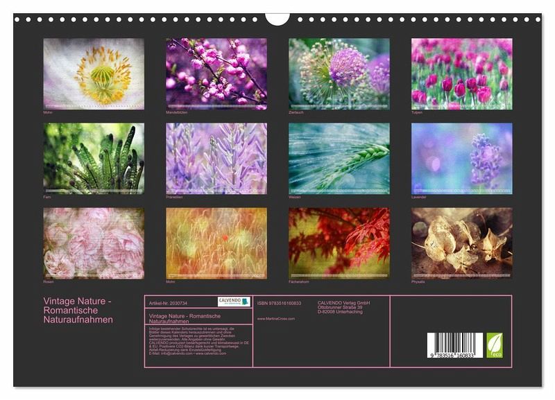 QUALITÄT - Hochwertiger Fotokalender mit 12 wunderschönen Motiven auf lichtbeständigem Bilderdruckpapier, robuste Spiralbindung mit Aufhängebügel.NACHHALTIG - deutliche Abfallreduzierung durch bedarfsgerechte Einzelstückfertigung, umweltfreundliches FSC-zertifiziertes Papier, Produktion in Deutschland, klimabewusste Logistik.PERFEKTES GESCHENK - Kalender für Freunde und Familie, für Kinder und Erwachsene, jung und alt, zu Weihnachten, Geburtstag oder zwischendurch.VIELFALT - Bildkalender in verschiedenen Formaten, z.B. DIN A5, DIN A4, DIN A3 sowie DIN A2. Ob Naturmotiv, Gemälde oder Fotos, ideal für ein persönliches Wohlfühlambiente.Kunstvolle Blumen, Blüten und Naturaufnahmen im trendigen Vintage Stil von Autor(in): Martina Cross