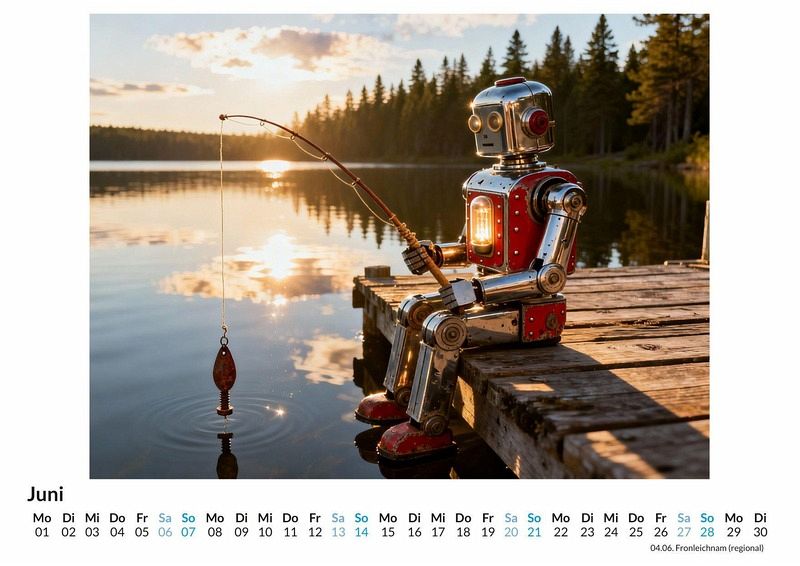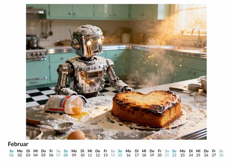 Eine Reise in eine Zukunft, wie sie sich die Vergangenheit erträumt hat. Der Kalender "Vintage Roboter" öffnet jeden Monat ein Fenster in eine Welt, in der Chrom auf Nostalgie trifft und mechanische Herzen mit einem liebenswerten Klappern schlagen. Er begleitet durch ein Jahr voller technischer Wunder und charmanter Missgeschicke. Dieser Kalender ist eine ideale Wahl für: * Fans von klassischer Science Fiction und Retrofuturismus. * Liebhaber von einzigartigem Design und nostalgischem Charme. * Alle, die eine Prise Humor und Skurrilität in ihrem Alltag schätzen. Zwölf Monatsmotive zeigen Roboter bei ihren alltäglichen, oft etwas ungeschickten Abenteuern. Von der rostigen Blechdose mit Antennen bis zum blitzenden Haushaltshelfer, jedes Bild erzählt eine kleine Geschichte. Diese Szenen wurden nicht gemalt, sondern aus den Tiefen digitaler Schaltkreise und kreativer Befehle zum Leben erweckt, um den Geist der 50er Jahre einzufangen. Jeder Roboter besitzt eine eigene Persönlichkeit, die mal nachdenklich, mal komisch und immer liebenswert ist. Mit dem Kauf dieses Kalenders ist zu erwarten: * Ein Wandkalender mit zwölf einzigartigen Monatsblättern. * Ein praktisches Kalendarium für die Organisation von Terminen. * Eine originelle Wanddekoration, die das ganze Jahr über Freude bereitet. Der Kalender "Vintage Roboter" ist mehr als nur ein Zeitplaner; er ist eine Hommage an eine Ära voller Optimismus und technischer Fantasie. Eine Entdeckungsreise durch die charmante Welt dieser mechanischen Gefährten wartet.