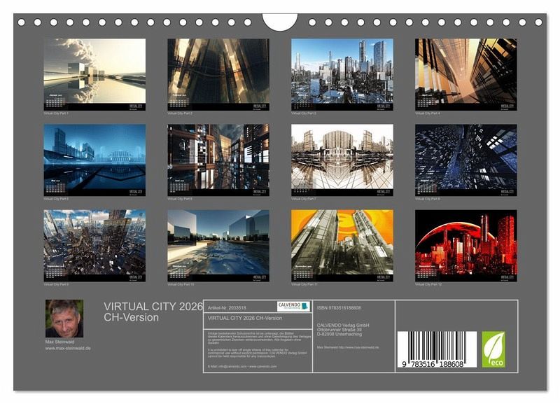 QUALITÄT - Hochwertiger Fotokalender mit 12 wunderschönen Motiven auf lichtbeständigem Bilderdruckpapier, robuste Spiralbindung mit Aufhängebügel.NACHHALTIG - deutliche Abfallreduzierung durch bedarfsgerechte Einzelstückfertigung, umweltfreundliches FSC-zertifiziertes Papier, Produktion in Deutschland, klimabewusste Logistik.PERFEKTES GESCHENK - Kalender für Freunde und Familie, für Kinder und Erwachsene, jung und alt, zu Weihnachten, Geburtstag oder zwischendurch.VIELFALT - Bildkalender in verschiedenen Formaten, z.B. DIN A5, DIN A4, DIN A3 sowie DIN A2. Ob Naturmotiv, Gemälde oder Fotos, ideal für ein persönliches Wohlfühlambiente.Virtuelle Architektur - moderne Stadtansichten von Autor(in): Max Steinwald