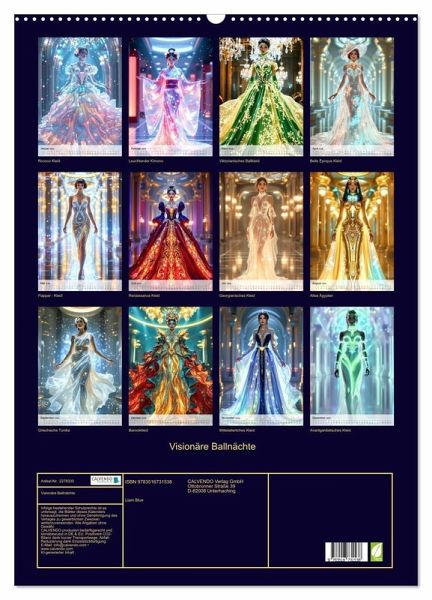Lassen Sie sich entführen zu einem Kostümball im Jahr 2245, wo Damen erstrahlen in glühenden Kleidern, inspiriert von den schönsten Epochen der Menschheitsgeschichte. Jedes Motiv verbindet klassischen Stil und futuristische Vision zu einem einzigartigen Gesamtkunstwerk - kunstvoll inszeniert und KI-generiert. Dieser Kalender eröffnet einen faszinierenden Blick auf Vergangenes und Zukünftiges zugleich und lädt zum Träumen, Staunen und Entdecken ein. Ein Fest für Liebhaberinnen außergewöhnlicher Mode, zeitloser Eleganz und kreativer Fantasie.