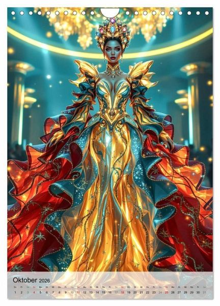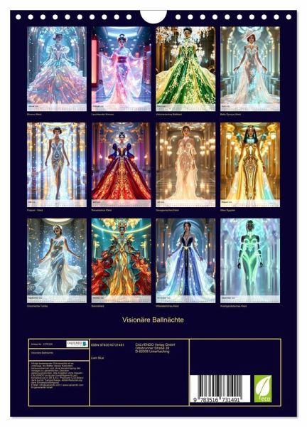 Lassen Sie sich entführen zu einem Kostümball im Jahr 2245, wo Damen erstrahlen in glühenden Kleidern, inspiriert von den schönsten Epochen der Menschheitsgeschichte. Jedes Motiv verbindet klassischen Stil und futuristische Vision zu einem einzigartigen Gesamtkunstwerk - kunstvoll inszeniert und KI-generiert. Dieser Kalender eröffnet einen faszinierenden Blick auf Vergangenes und Zukünftiges zugleich und lädt zum Träumen, Staunen und Entdecken ein. Ein Fest für Liebhaberinnen außergewöhnlicher Mode, zeitloser Eleganz und kreativer Fantasie.