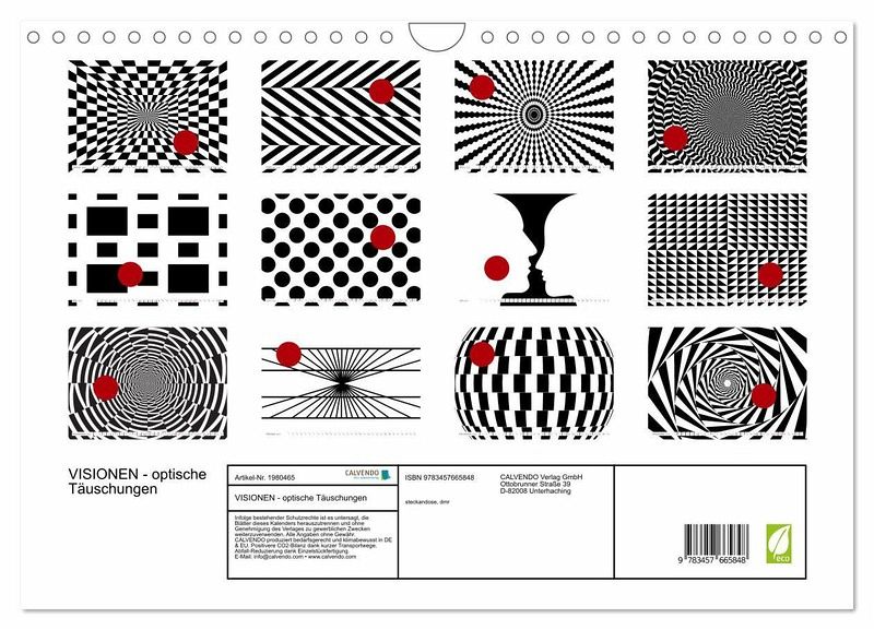 QUALITÄT - Hochwertiger Fotokalender mit 12 wunderschönen Motiven auf lichtbeständigem Bilderdruckpapier, robuste Spiralbindung mit Aufhängebügel.NACHHALTIG - deutliche Abfallreduzierung durch bedarfsgerechte Einzelstückfertigung, umweltfreundliches FSC-zertifiziertes Papier, Produktion in Deutschland, klimabewusste Logistik.PERFEKTES GESCHENK - Kalender für Freunde und Familie, für Kinder und Erwachsene, jung und alt, zu Weihnachten, Geburtstag oder zwischendurch.VIELFALT - Bildkalender in verschiedenen Formaten, z.B. DIN A5, DIN A4, DIN A3 sowie DIN A2. Ob Naturmotiv, Gemälde oder Fotos, ideal für ein persönliches Wohlfühlambiente.VISIONEN - optische Täuschungen um loszulassen und zu entspannen von Autor(in): Sven Thiele