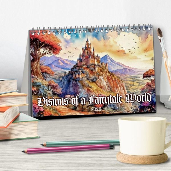 This unique picture calendar takes us on a journey through an enchanting fairytale land. Let us be captivated by twelve breathtaking landscapes that ignite our imagination and were created with the aid of artificial intelligence. Along the way, we encounter mysterious castles, picturesque villages, and dense forests, as well as majestic mountains that never fail to amaze us month after month. With this calendar, we bring not only a touch of magic into our home, but also the unique effect of watercolor illustrations that, with AI support, transforming each month into a captivating visual experience.