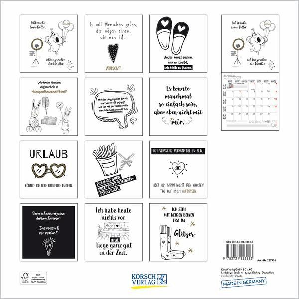Elegant geschwungene Schriften im Stil des Handlettering liegen nach wir vor im Trend. Ihre Faszinationskraft liegt in der Individualität und Sorgfalt begrün-det, mit der jeder einzelne Buchstabe kalligrafisch zu einem kleinen Kunstwerk ausgestaltet wird. Die Bildsprache bleibt dezent und minimalistisch - nur weni-ge Buchstaben tanzen über den hellen Hintergrund des Bildes, um in diesem Kalender Monat für Monat die Schönheit und Sinnhaftigkeit eines poesievollen Spruches oder trendigen Lebensgefühls hervorzuheben.