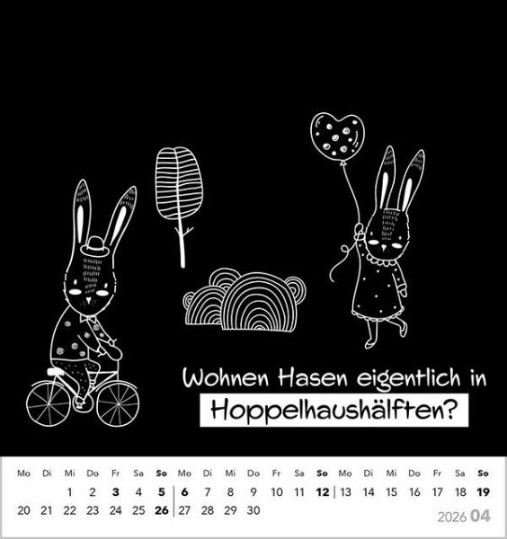 Jedes Kalenderblatt ist so gestaltet, dass es einfach abzutrennen ist. Somit können Sie jeden Monat eine Postkarte mit einem schönen Spruch versenden oder verschenken.