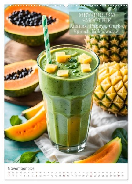 Willkommen zu einer Reise durch das Jahr voller Geschmack und Gesundheit! Unser einzigartiger Kalender präsentiert Ihnen jeden Monat atemberaubende, KI-generierte Bilder von Smoothies, die nicht nur köstlich aussehen, sondern auch perfekt zu verschiedenen Anlässen passen. Jede Seite unseres Kalenders ist ein Fest für die Augen und ein Geschenk für Ihren Körper. Lassen Sie sich inspirieren und entdecken Sie die vielseitige Welt der Smoothies - von entspannenden Abenden bis hin zu konzentrierten Arbeitstagen. Unser Smoothie-Kalender ist mehr als nur ein Kalender. Er ist ein täglicher Begleiter, der Ihnen hilft, gesund und ausgeglichen zu bleiben. Lassen Sie sich von den farbenfrohen Bildern inspirieren und probieren Sie jeden Monat neue, leckere und gesunde Rezepte aus.