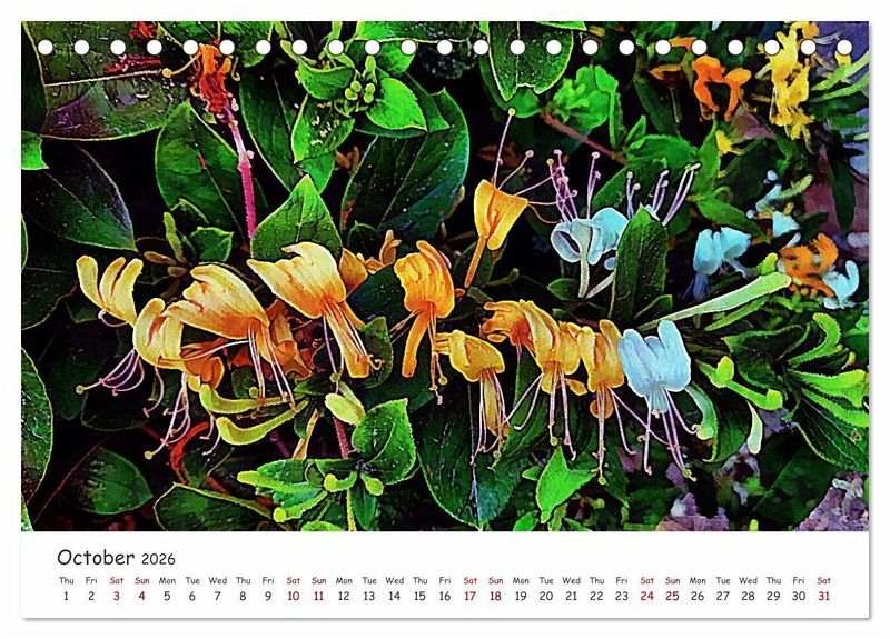 There is nothing like beautiful flowers to lift the spirits and this gorgeous calendar will do just that. Full of bright and lively artistic floral images it will bring sunshine into your home. To create these images, I have taken my own photographs and then enhanced them digitally on my computer to give them an artistic feel.