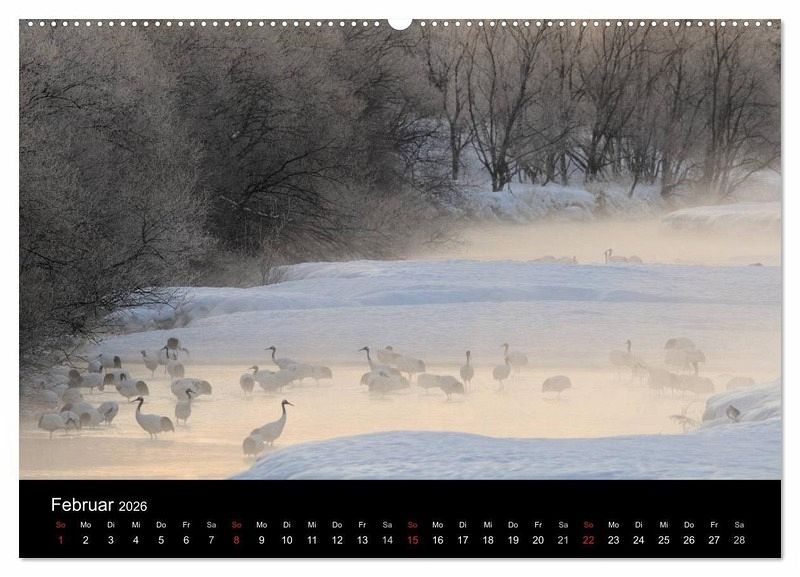 Februar: Mandschurenkranich, Hokkaido, Japan