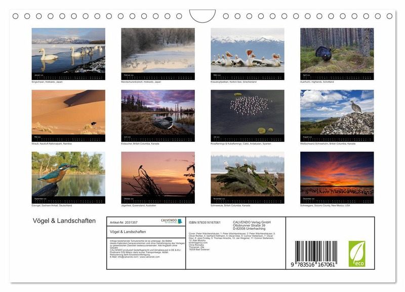 Einen Vogelbildkalender der besonderen Art hat die Bildagentur birdimagency.com kreiert. Es werden Vogelarten in atemberaubend schönen Landschaften, Stimmungen und Perspektiven präsentiert.