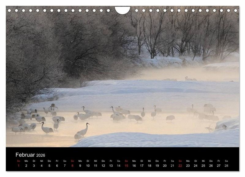 Februar: Mandschurenkranich, Hokkaido, Japan